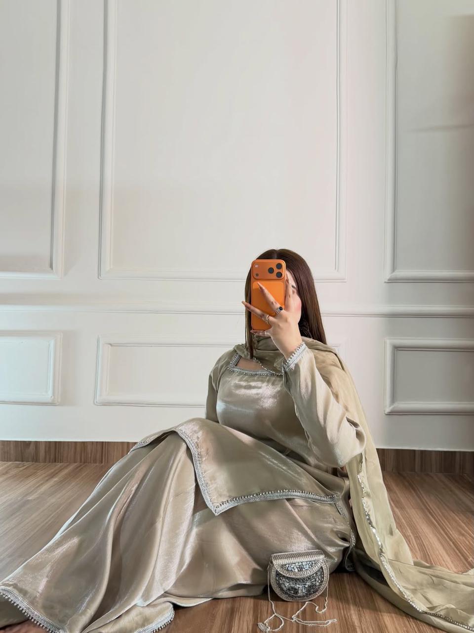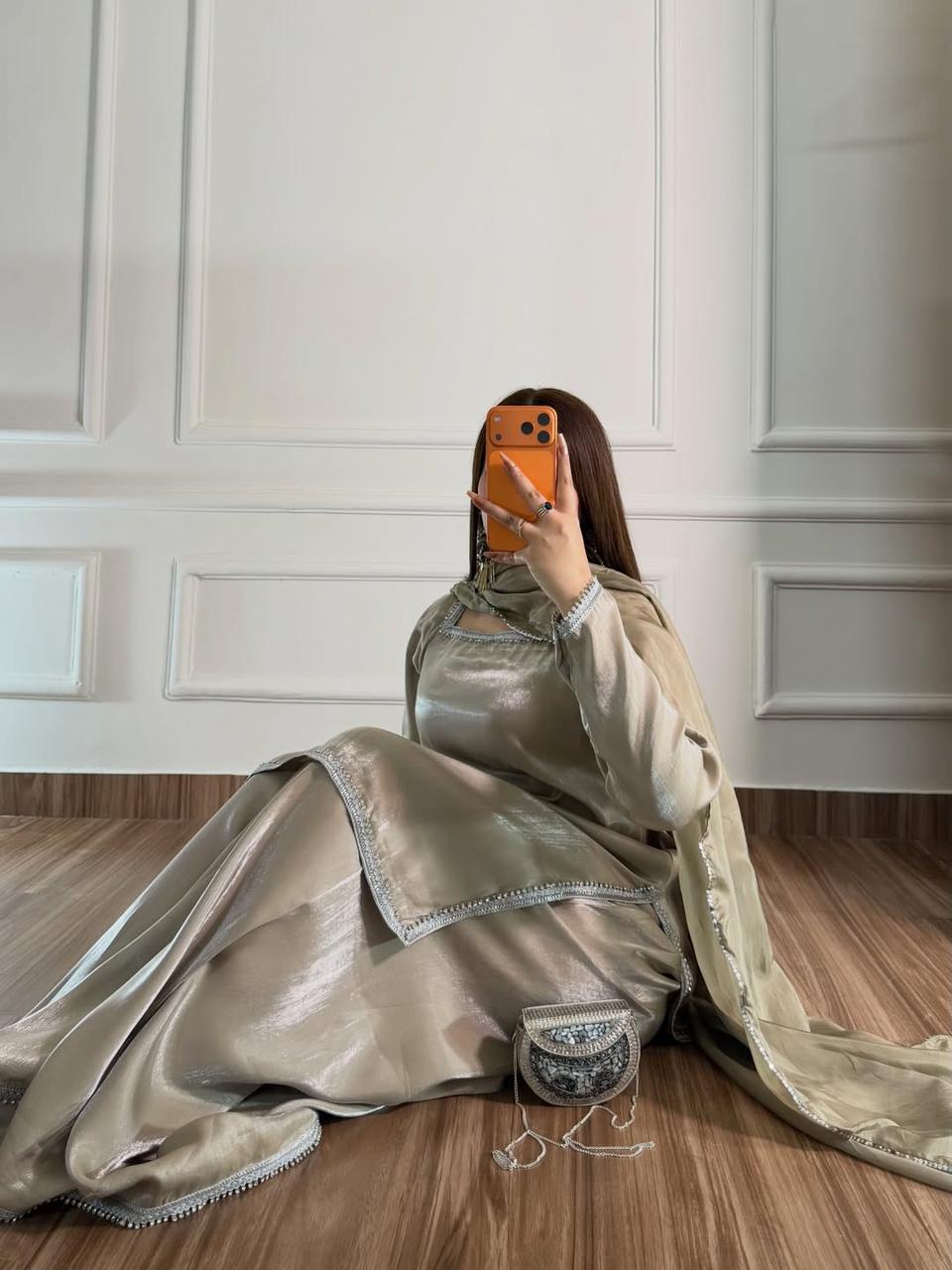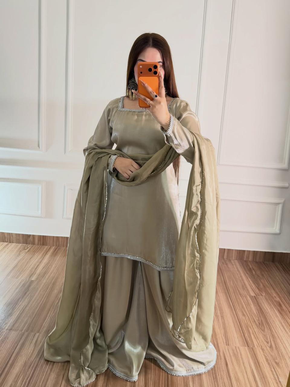• 3 PC outfit - short shirt, palazzo and silk dupatta